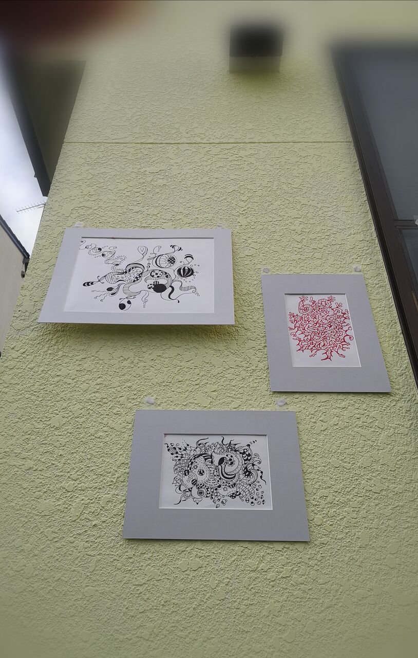 2020年07月31日 お家展覧会5日目 お家展覧会5日目 脚立があればなんでもできる!😆 ゼンタングルグル展にだしただけでしまい込んでいた作品を5分だけ展示してみました! 家の壁が展示場になるなんて面白いね! にほんブログ村
