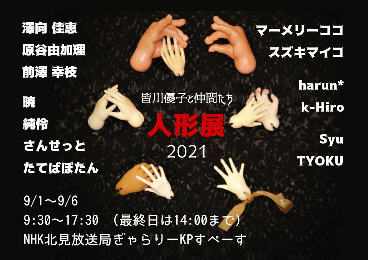 教室展「皆川優子と仲間たち人形展」のDMもできました。若さあふるるデザイン!全てお任せしたのが大正解!13人の個性が輝く人形展になると思います。教室展と私の個展は地元NHKで隣り合わせのギャラリーで同時期開催です。