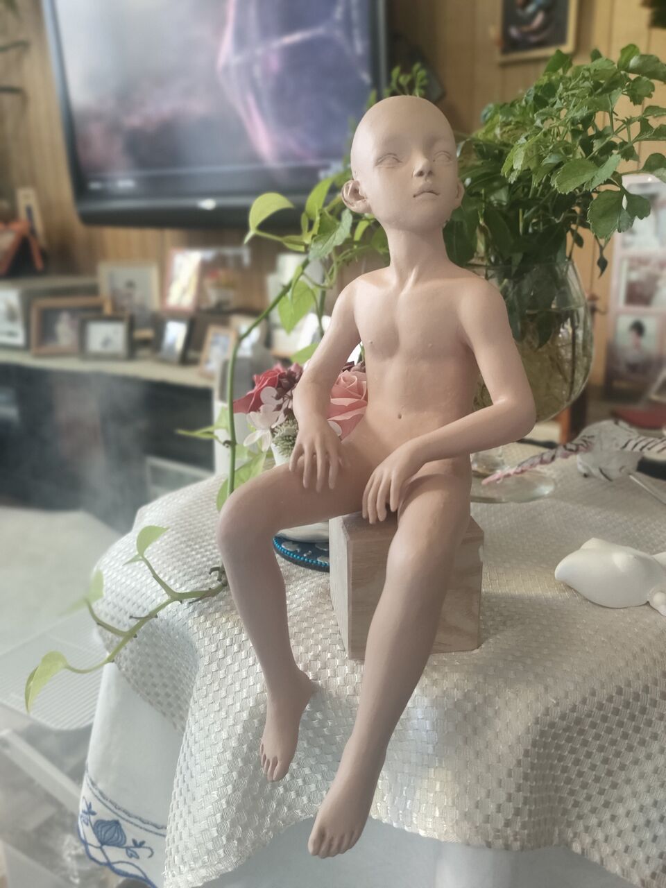 少年が仮に笑ったとしたら白い歯がのぞくだろうとそんな妄想をするのも人形制作の楽しみの1つ←私だけかな?(笑)