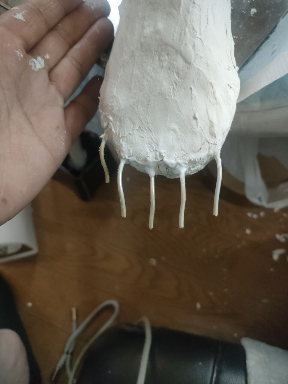 指の骨になるワイヤー入れました。